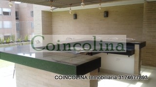 Espectacular apartamento ENCORTINADO, en conjunto cerrado, de 71 mts distribuidos por el recibidor, sala comedor, balcón, cocina integral TIPO AMERICANO, zona de ropas, zona de estar, estudio, hall de habitaciones, baño auxiliar, dos habitaciónes auxiliares con closet, alcoba principal con closet de pared a pared y baño. Con Garaje DESCUBIERTO. El conjunto cuenta con GYM, BBQ, Ascensor, bicicleteros, parqueadero de visitantes y salón social, parques infantiles. El conjunto se encuentra cerca al centro del Municipio, así como, la variante Zipa Bta, en la cual se encuentran Universidades, Colegios, almacenes de gran superficie, zonas de entrenimiento turístico y cultural